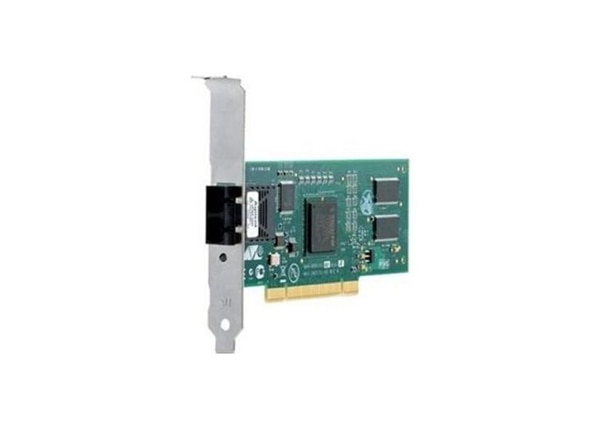 Allied Telesis Desktop fiber adapter offers high reliability, detailed tests, diagnostics and analysis. Supports network interface card for enhanced bandwidth and bus efficiency. The Allied Telesis 2911 series AT-2911SX/SC 1000SX network adapter has PCI Express x1 host interface, one SC port and RJ-45 port for connectivity. It is compatible with PC. This adapter measures 2.7" x 3.6". It has link activity and link OK status indicators. This adapter has ACPI support, auto-negotiation, flow control, full duplex mode, jumbo frames support, load balancing and VLAN support. It comes with full-height bracket and low-profile bracket. The Gigabit Ethernet adapter offers data transfer rate of 1 Gb/s. Network adapter interface: PCI Express x1. Network adapter speed: 100 Mbps. Multi-mode fiber. Network adapter ports: 1 x SC. Network technology: 1000Base-SX. Form factor: Plug-in card. Connector type: SC. Cabling type: Ethernet 1000Base-SX. Connectivity technology: Wired. Data link protocol: Gigabit ethernet. Max transfer distance: 220 m. Network transport protocol: TCP/IP. Dimensions: 2.7"(H) x 3 1/2"(W). Weight: 0.13 lbs. Compliant standards: IEEE 802.1p.Network adapter aids for communicating over a network with another computer