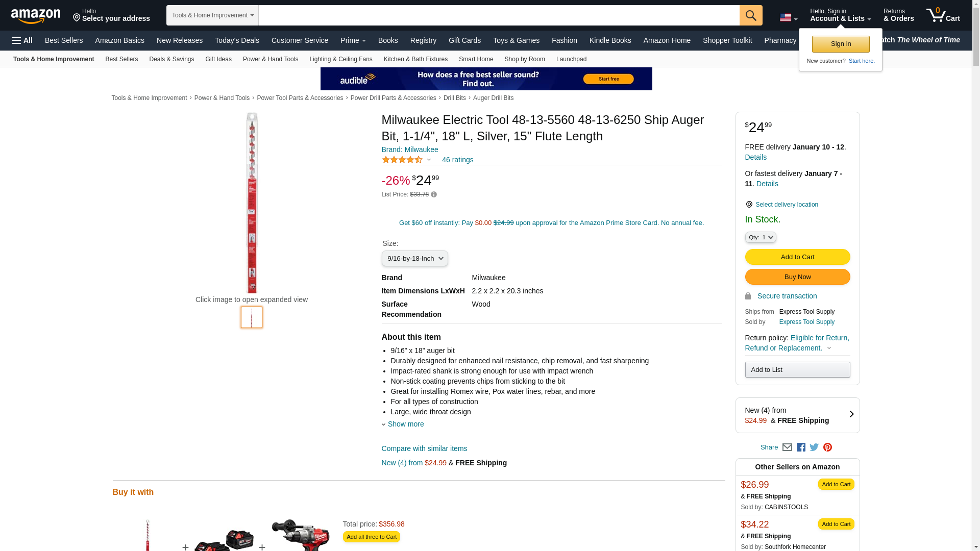 Milwaukee 48-13-5560 9/16-by-18-Inch Ship Auger Bit