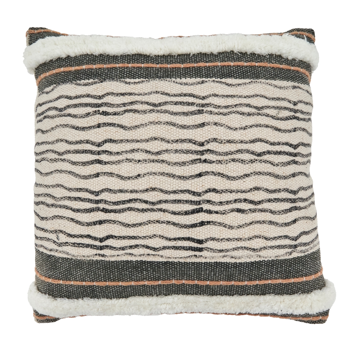 SARO 7140.M20SD 20 in. Square Printed & Embroidered Down Filled Throw Pillow with Stripe Design