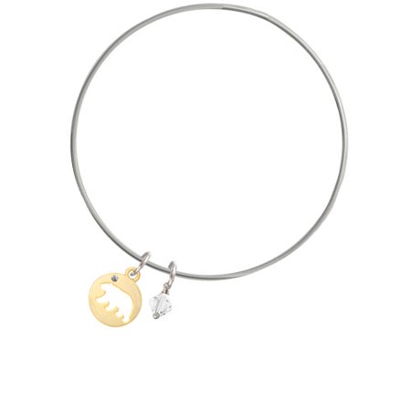 Gold Tone Bear Silhouette - Clear Bicone Bangle Bracelet. Gold Tone Bear Silhouette is approximately 0.64 x 0.53 x 0.09 inches (HxWxD) including loop. Smooth disc with a clear crystal on the front. Wear this bear paw as a symbol of power, courage, freedom, and protection. 1.8 mm Bangle Bracelet inside circumference is approx: 2.50 Inches. Hand wrapped crystal bicone is approx: 6mm. This Bangle looks wonderful alone or layered with other Bangles to match your style. Available in many colors. We are a family owned company in the U.S.A. since 1977. PLEASE NOTE: Our products are lead safe, but are not intended for children 14 years and younger.