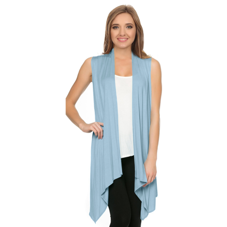 Womens Asymmetrical Draped Open Front Cardigan Jersey Knit Sleeveless Vest - USA