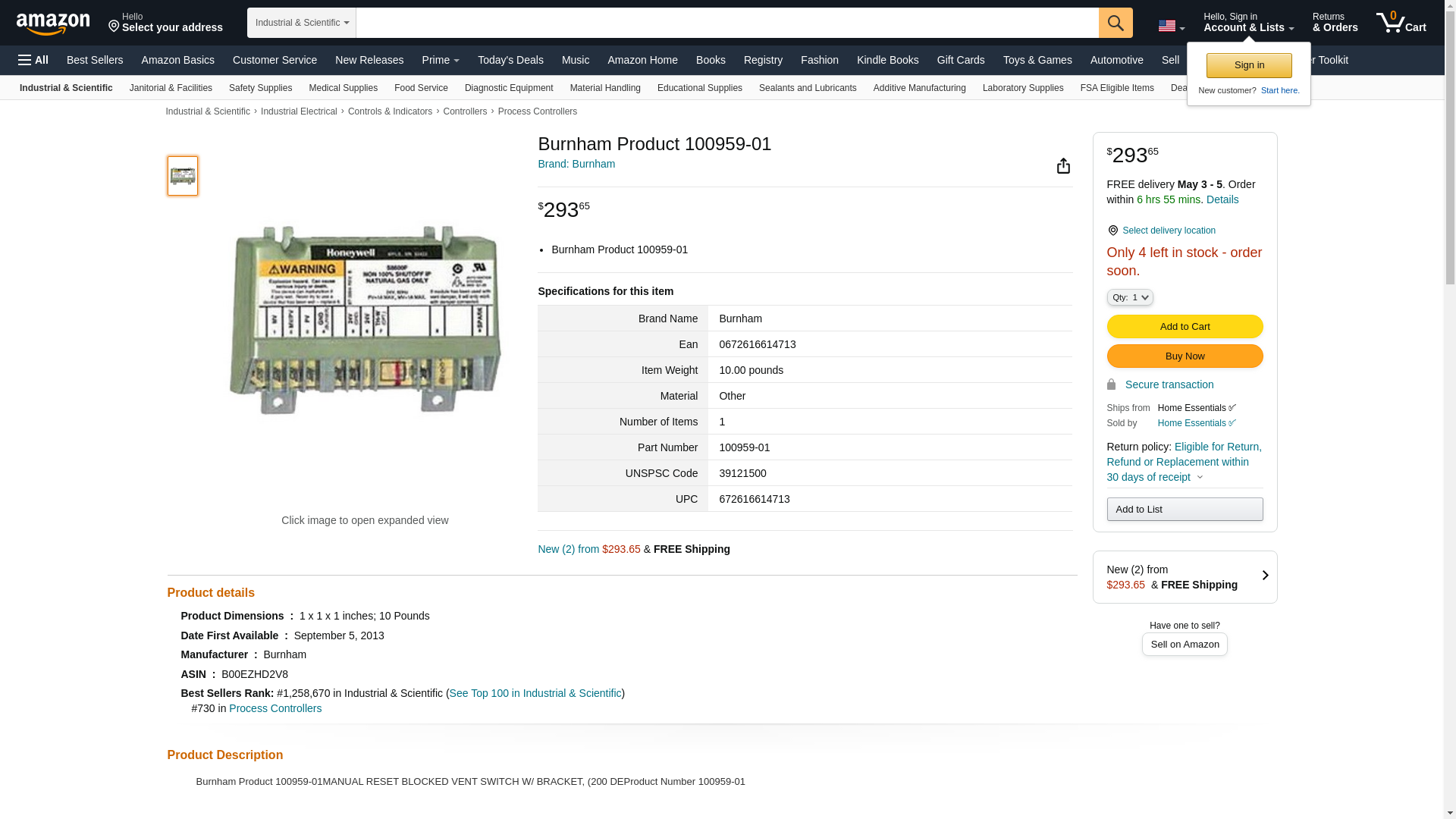 ![]() midwestapplianceparts.com | 100959-01-BU-P | 1 | -2 | 1 | 1 @ $185.08 |