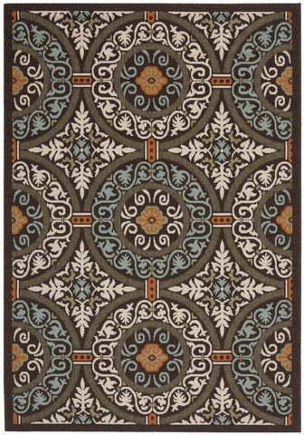 Safavieh VER055-0723-7SQ Veranda Power Loomed Square Rug, Chocolate - Aqua, 6 ft. 7 in. x 6 ft. 7 in.