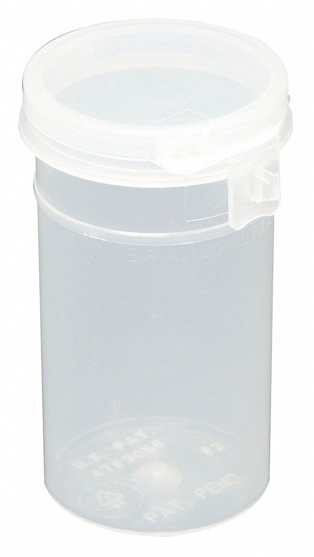 - Natural polypropylene hinged vial with break off arrow and lock seal tab