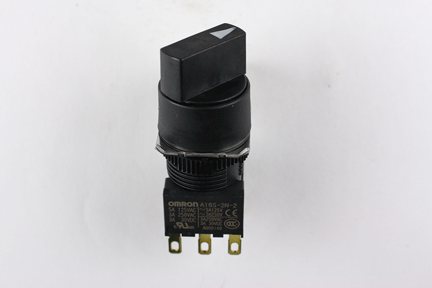 Omron A165S-T2M-2 Knob Type Selector and Switch, Solder Terminal, IP65 Oil-Resistant, 16mm Moutning Aperture, Non-Lighted, 2 Notches, Manual Reset Method, Round, Double Pole Double Throw Contacts