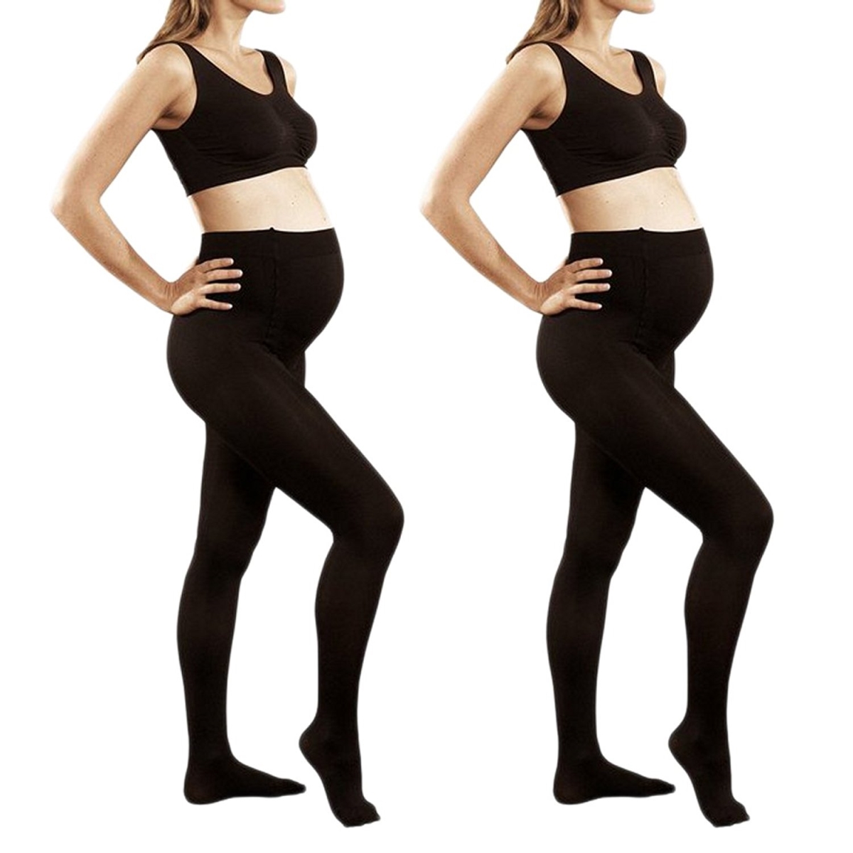 Mod & Tone 917-620-MTY-BLK-L Large & Extra Large Maternity Microfiber Opaque Wide Waistband Tights, Black - Pack of