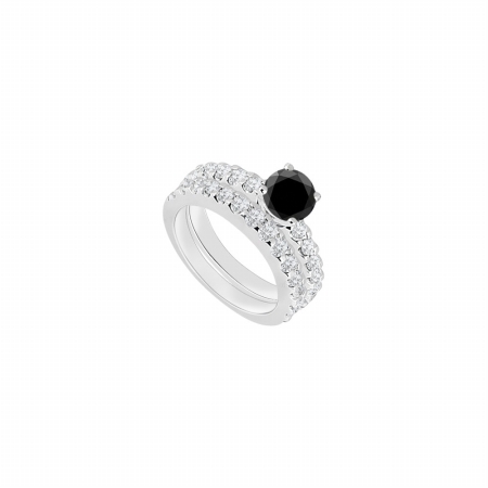 Fine Jewelry Vault UBJS358ABW14BDRS8 14K White Gold Black Diamond Engagement Ring with Wedding Band Set, 1.50 CT - S