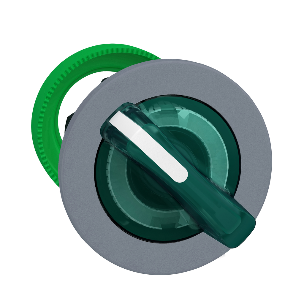 Head for illuminated selector switch, Harmony XB5, grey bezel, green handle, flush mounted, 30mm, universal LED, 2 positions | Mayer Electric