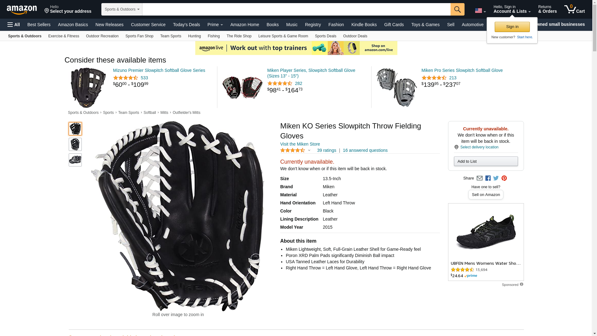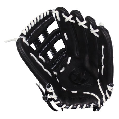 Miken KO Series Slowpitch Throw Fielding Gloves, 13.5-Inch, Black, Left Hand(Right Hand Throw)