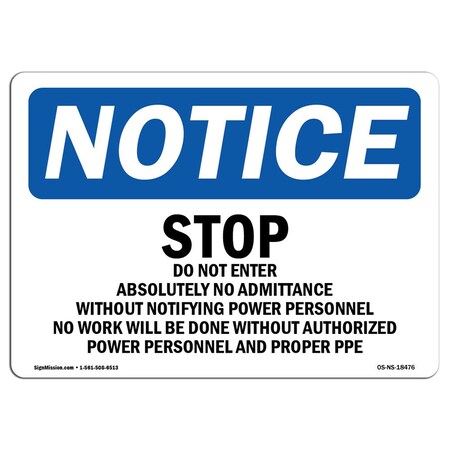OSHA Notice Sign, Stop Do Not Enter Absolutely No Admittance, 24in X 18in Rigid Plastic
