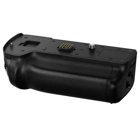 - Ergonomic battery grip for Panasonic LUMIX GH5 mirrorless camera body.
