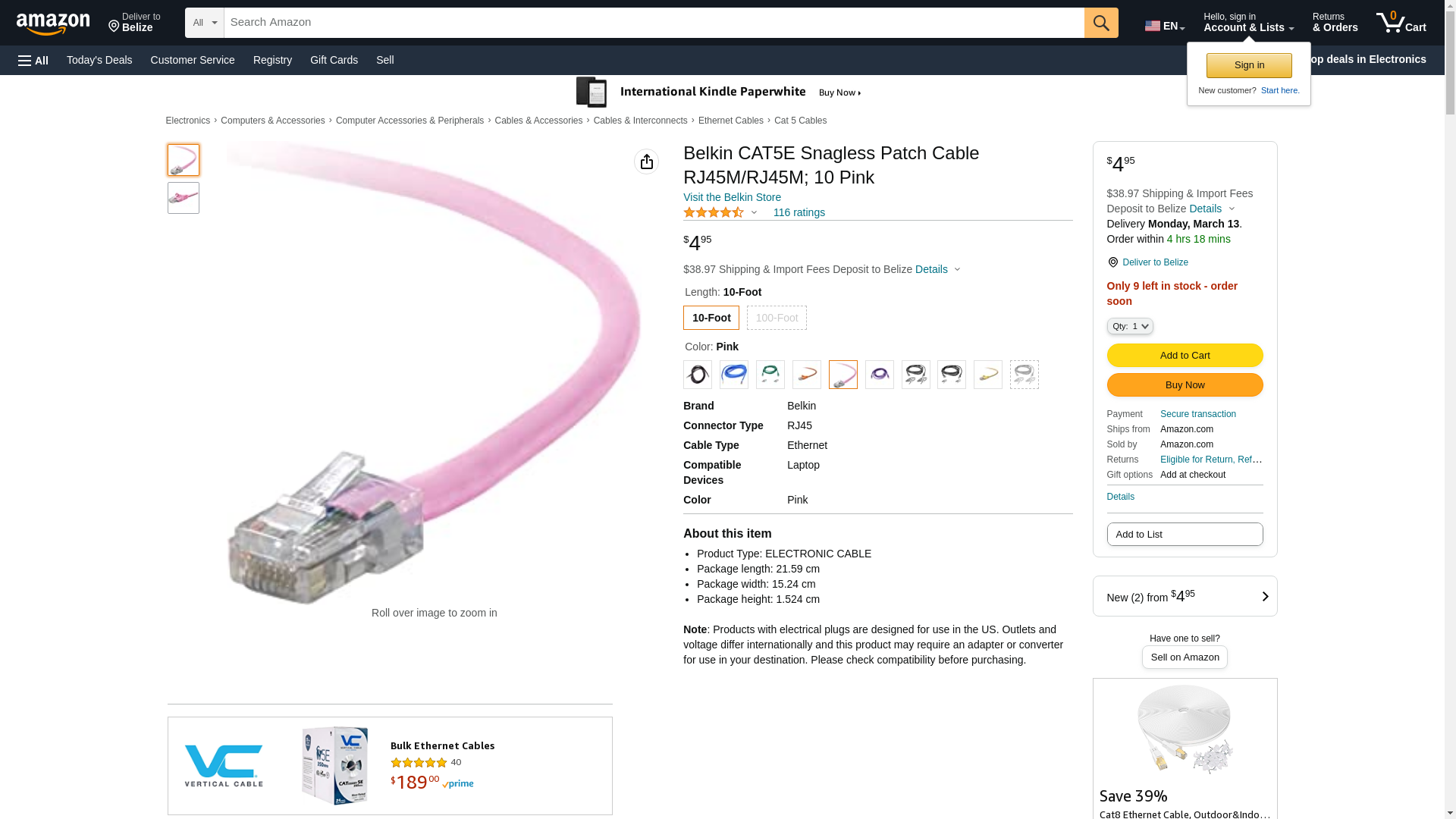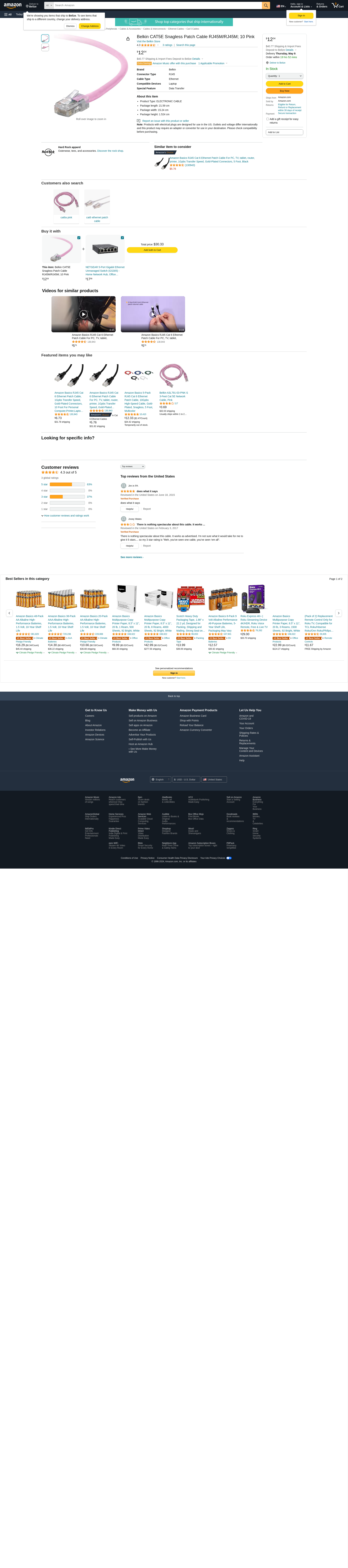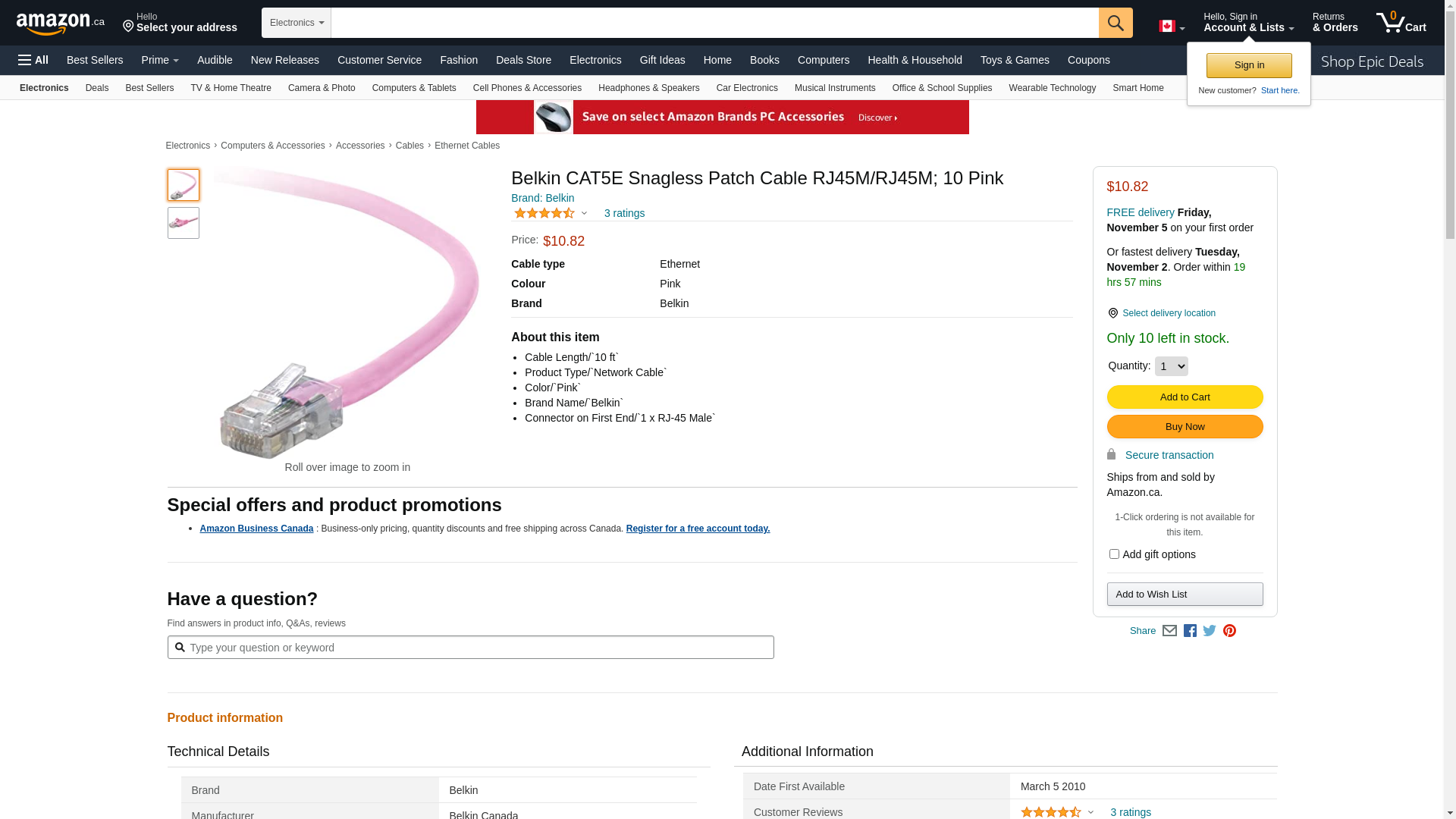 Buy Belkin A3L79110PNKS As low as $4.04 in bulk In stock Belkin Cat. 5e Utp Patch Cable - 1 X Rj-45 Male - 1 X Rj-45 Male - 10ft - Pink (a3l79110pnks)