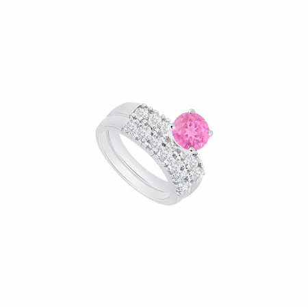 Fine Jewelry Vault UBJS590ABW14DPSRS4.5 14K White Gold Pink Sapphire & Diamond Engagement Ring with Wedding Band Set,