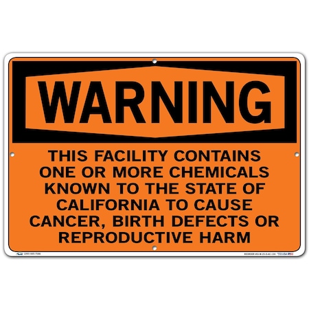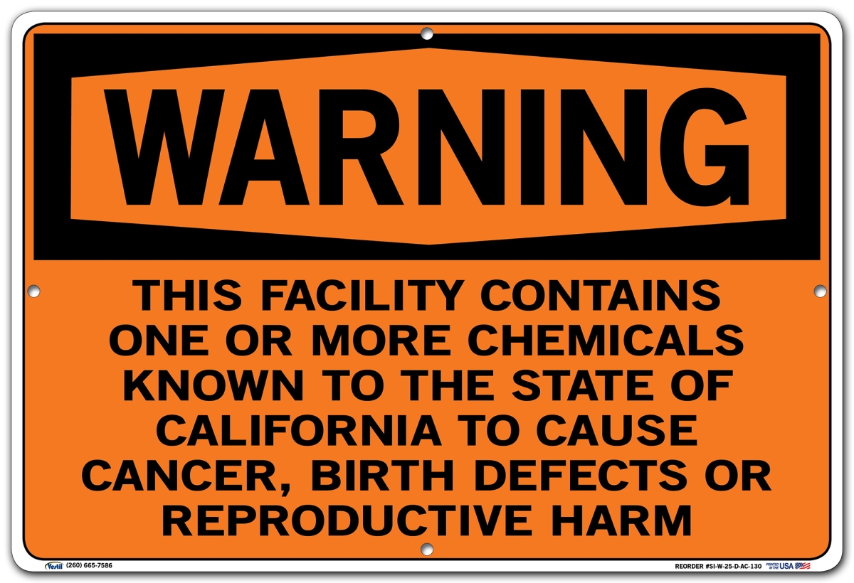 Vestil SI-W-25-D-AC-130 Sign-Warning-25 18.5X12.5 Alum Comp .130, THIS FACILITY CONTAINS ONE OR MORE CHEMICALS CAUSE CANCER, BIRTH DEFECTS, REPRODUCTIVE HARM