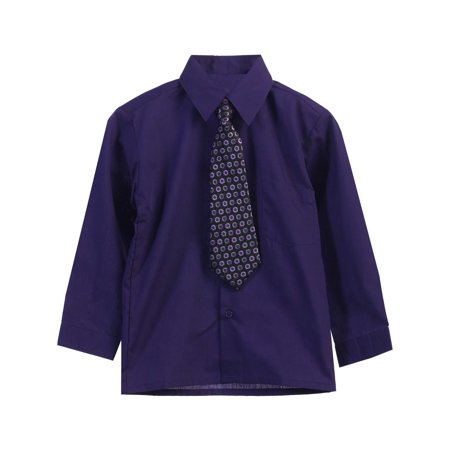 Big Boys Purple Tie Long Sleeve Button Special Occasion Dress Shirt 18