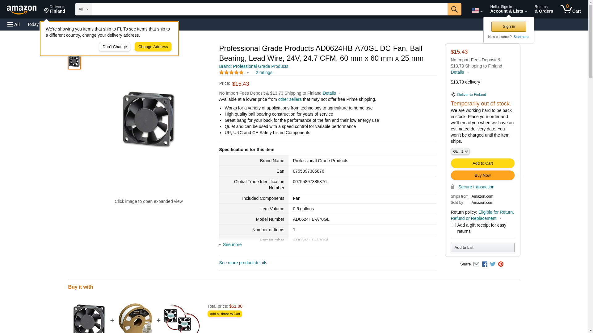 | AD0624HB-A70GL | 300 | 1 | 300 @ $7.37, 10000 @ $7.05 |