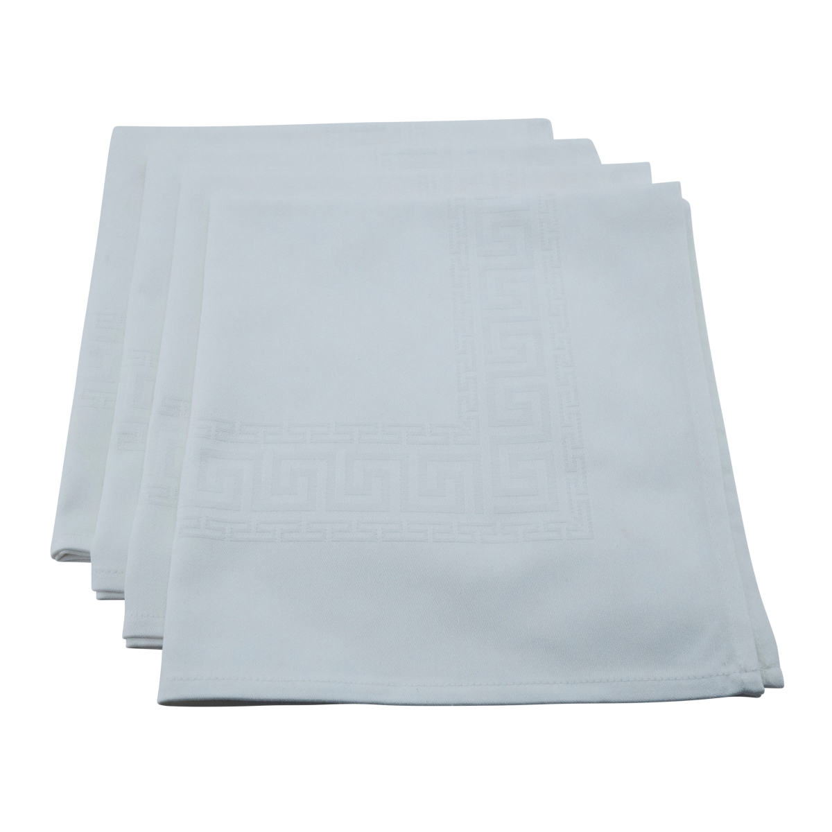 SARO DM002.W21S 21 in. Greek Key Square Design Damask Napkin - White Set of 4