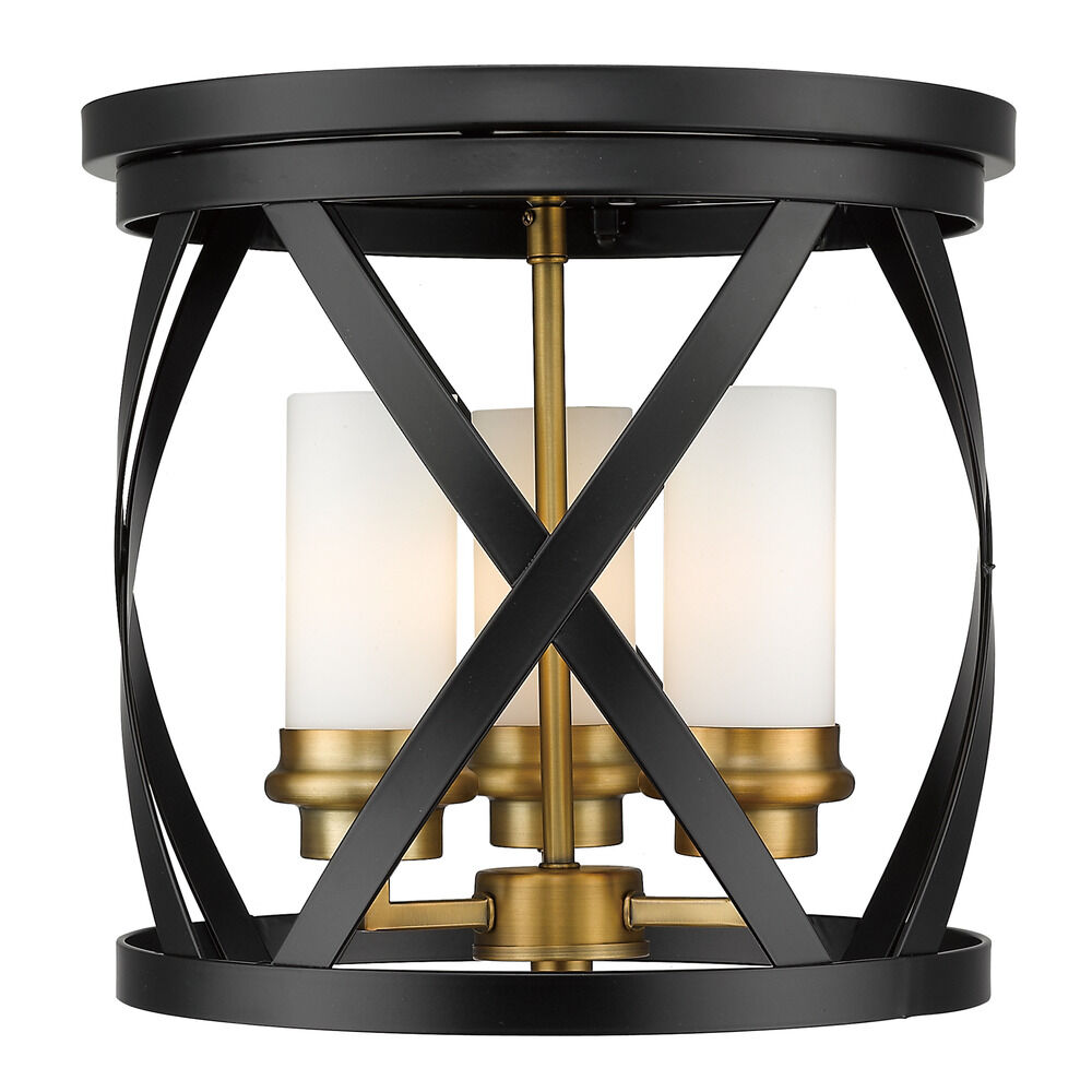 Malcalester - 3 Light Flush Mount in Restoration Style - 13 Inches Wide by 12.25 Inches High-Matte Black/Olde Brass Fini