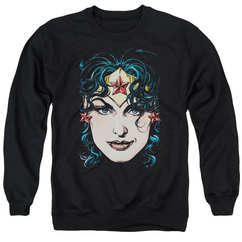 Trevco Dco Jla-Wonder Woman Head Adult Crew Sweat Tee, Black - Large
