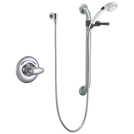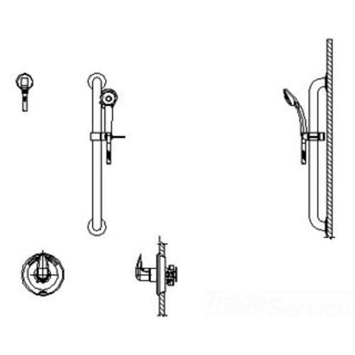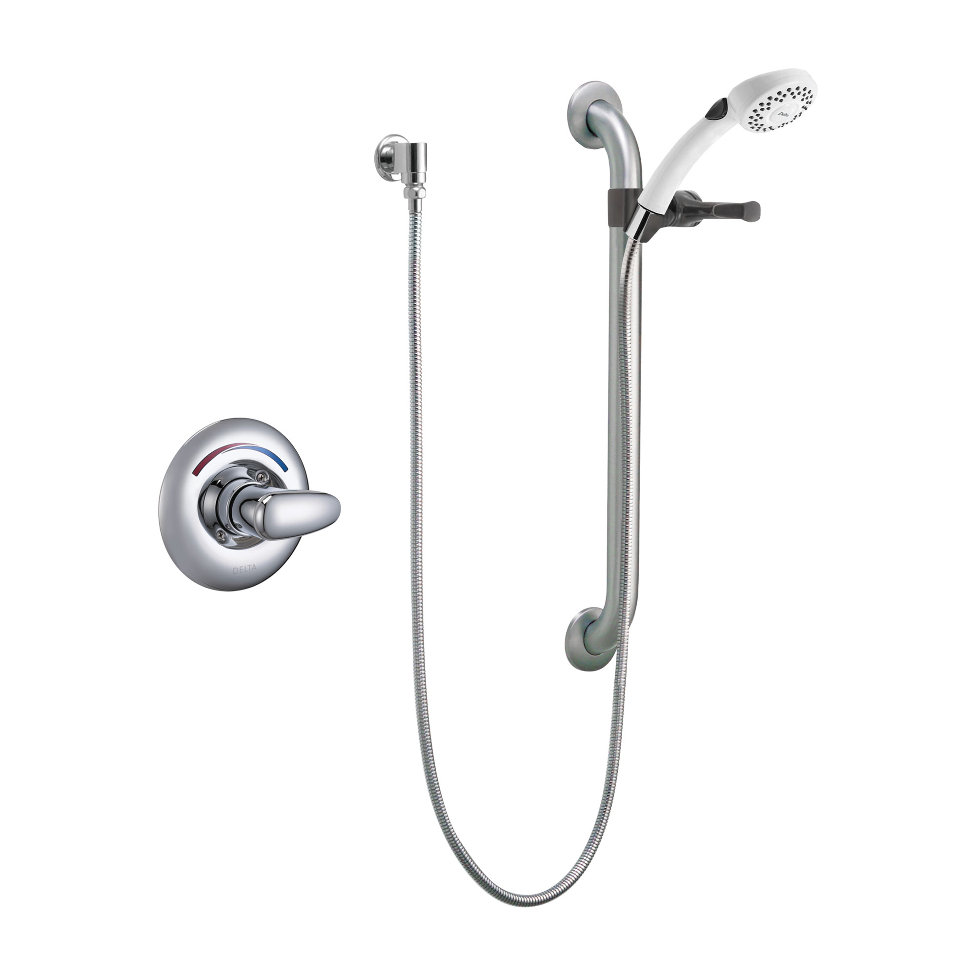 Commercial Single Handle Hand Shower Valve Trim Only with Metal Lever Handle, 24" Combination Grab and Slide Bar, Hand Shower Holder, 69" Brass Double Spiral Hose, Quick Connect Hose Coupler, and Single Function 1.5 GPM Hand Shower Product Features and Benefits: Single Handle Valve Trim Hand Shower 24" Grab Bar Metal Lever Handles Quick Connect Hose Couplers 69" Braided Metal Hose Specifications: Single Function Flow Rate: 1.5 Metal Lever Handle Delta Smart Features: ADA Compliant