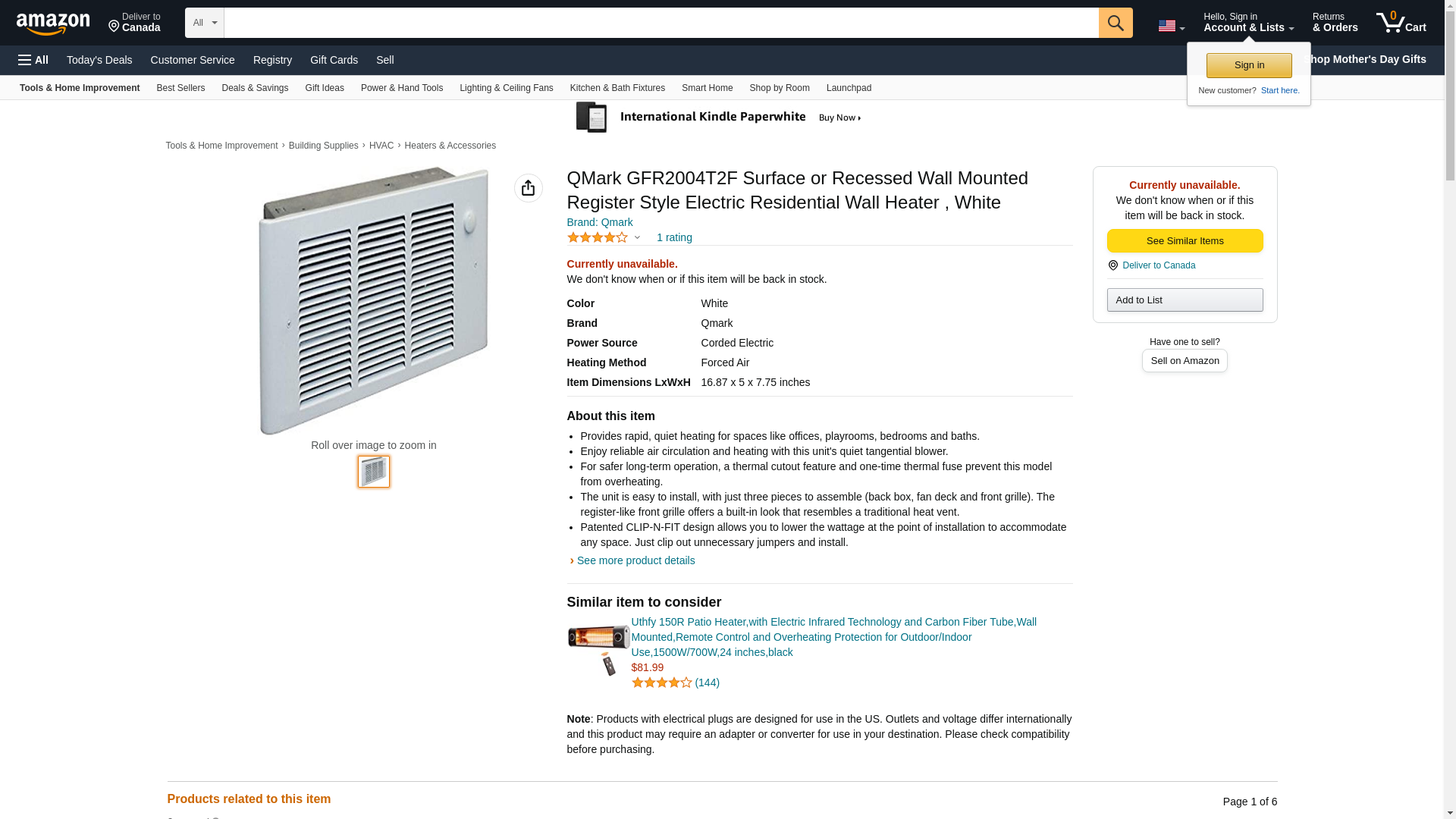 QMark GFR2004T2F Surface or Recessed Wall Mounted Register Style Electric Residential Wall Heater , White