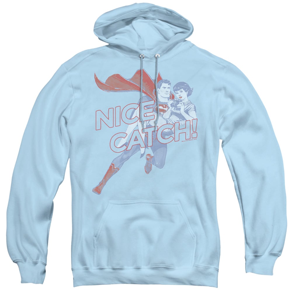 Trevco SM2326-AFTH-1 Superman & Nice Catch Adult Pull Over Hoodie, Light Blue - Small