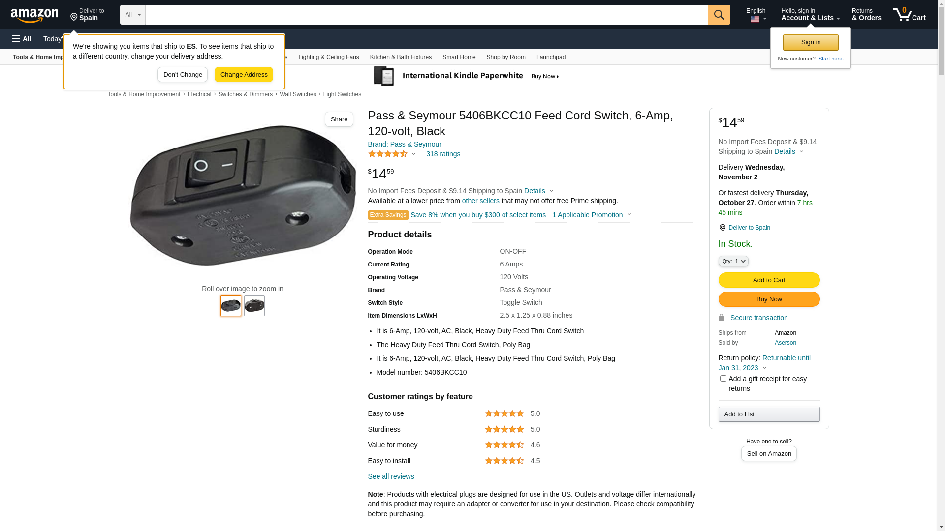 | Feature | It is 6-Amp, 120-volt, AC, Black, Heavy Duty Feed Thru Cord Switch |