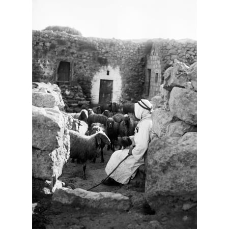 Sharafat Shepherd Na Young Shepherd Guards The Entrance To A Corral At Sharafat East Jerusalem Photograph C1928 Poster Print by Granger Collection