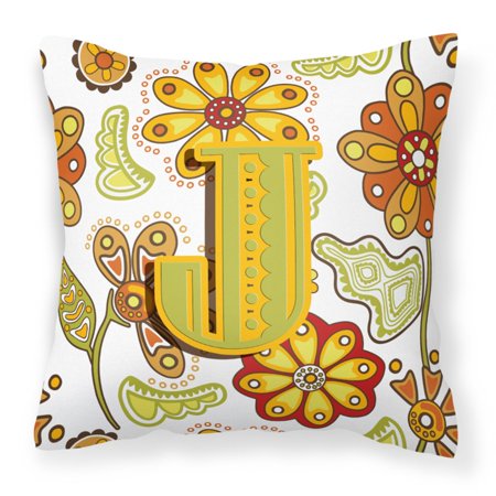 Carolines Treasures CJ2003-JPW1414 Letter J Floral Mustard And Green Canvas Fabric Decorative Pillow