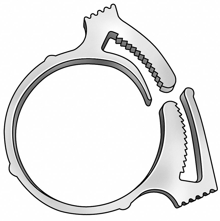 Item:Hose Clamp; Clamping Dia.:0.513 to 0.586 in; Thickness:0.07 in; Width:0.23 in; Color:Black; Material:Nylon;