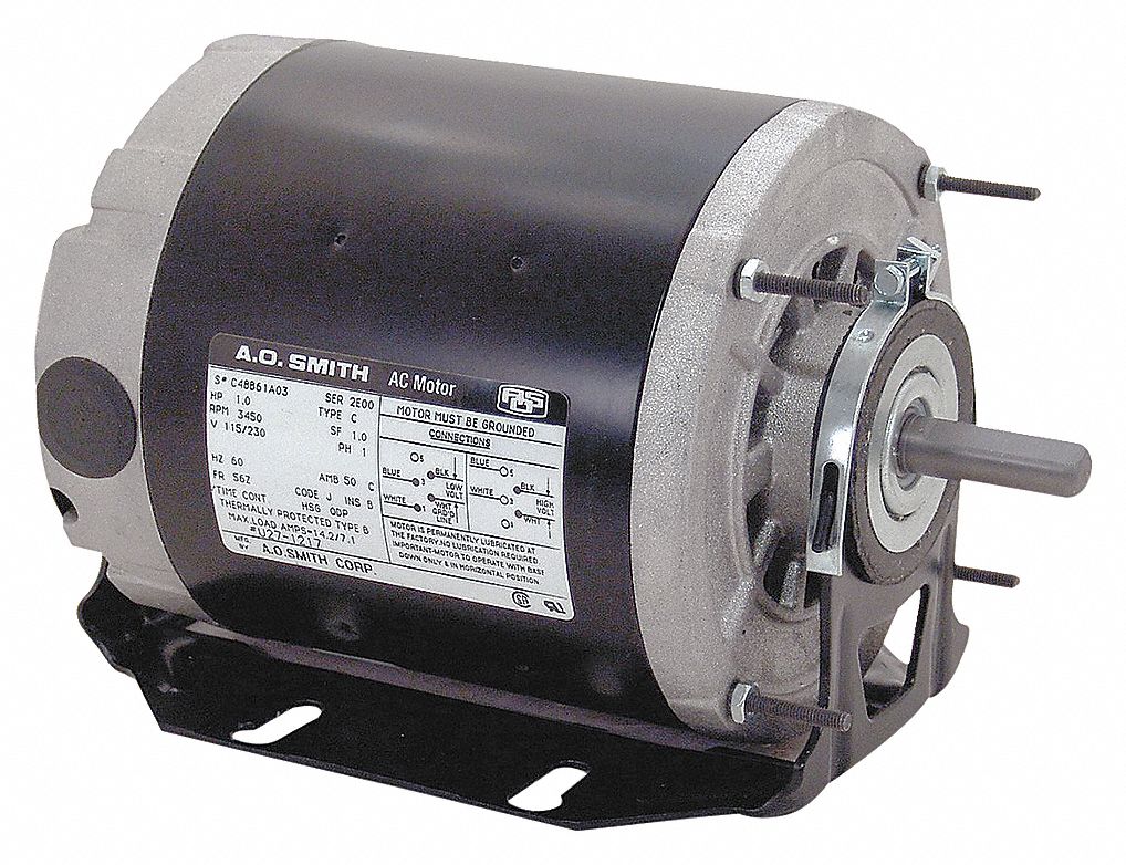 Direct Drive Blower Motor, Split-Phase Motor Design, Totally Enclosed Air-Over Motor Enclosure Design, 1/3 HP, 1140 Nameplate RPM, Voltage 115/208-230, 6.0/3.0-3.0 Full Load Amps, 60 Hz, 1 Phase, 56 Frame, Motor Service Factor 1.00, Max. Ambient Temp. 40 Degrees C, Ins. Class B, Duty Continuous, No. of Speeds 1, Motor Mounting Type Cradle Base, Motor Mounting Position All Angle, Motor Bearings Ball, Motor Thermal Protection None, Motor Shaft Rotation CW/CCW, Length Less Shaft 9-9/16 In.