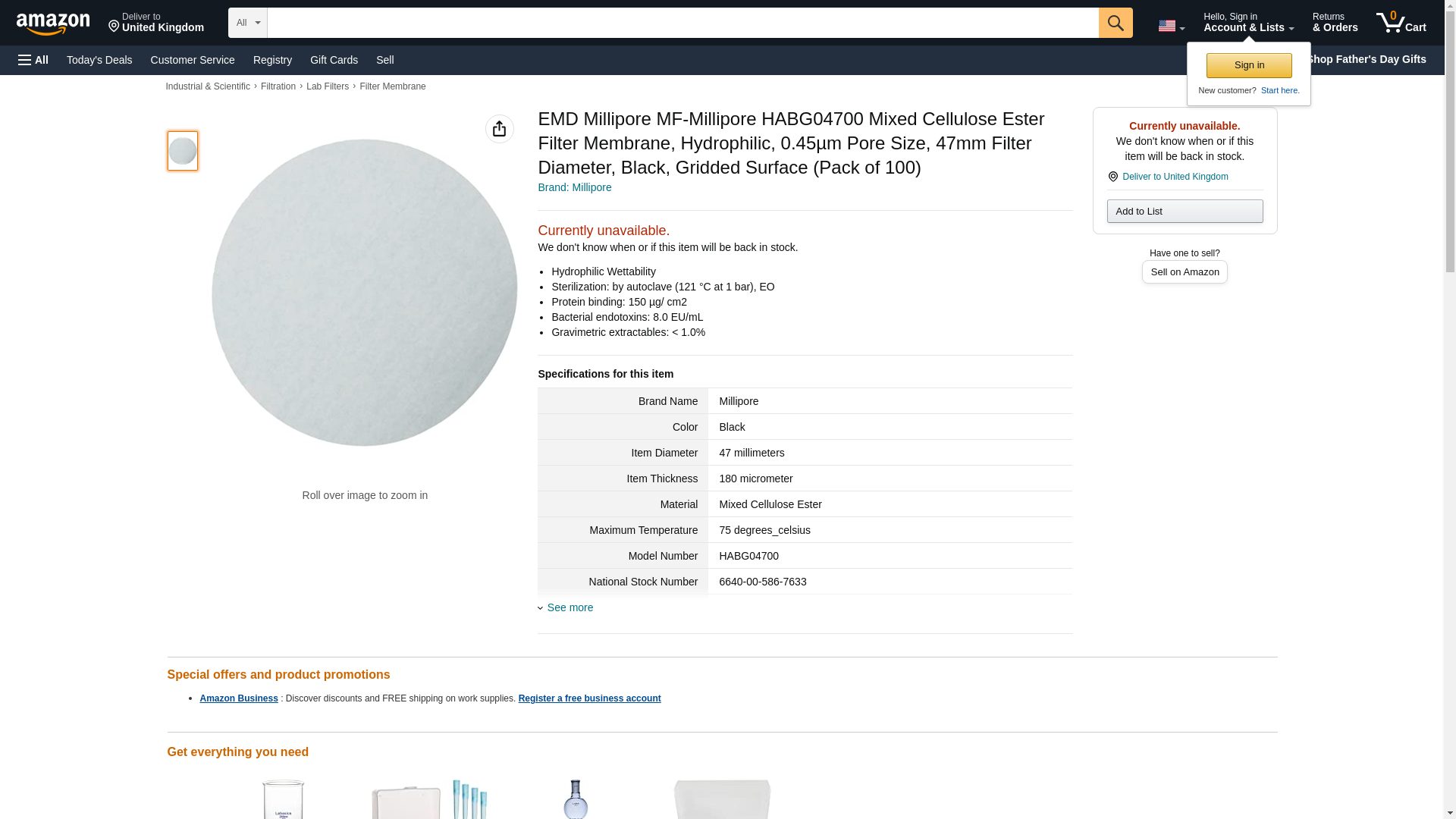 EMD Millipore MF-Millipore HABG04700 Mixed Cellulose Ester Filter Membrane, Hydrophilic, 0.45µm Pore Size, 47mm Filter Diameter, Black, Gridded Surface (Pack of 100)