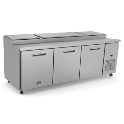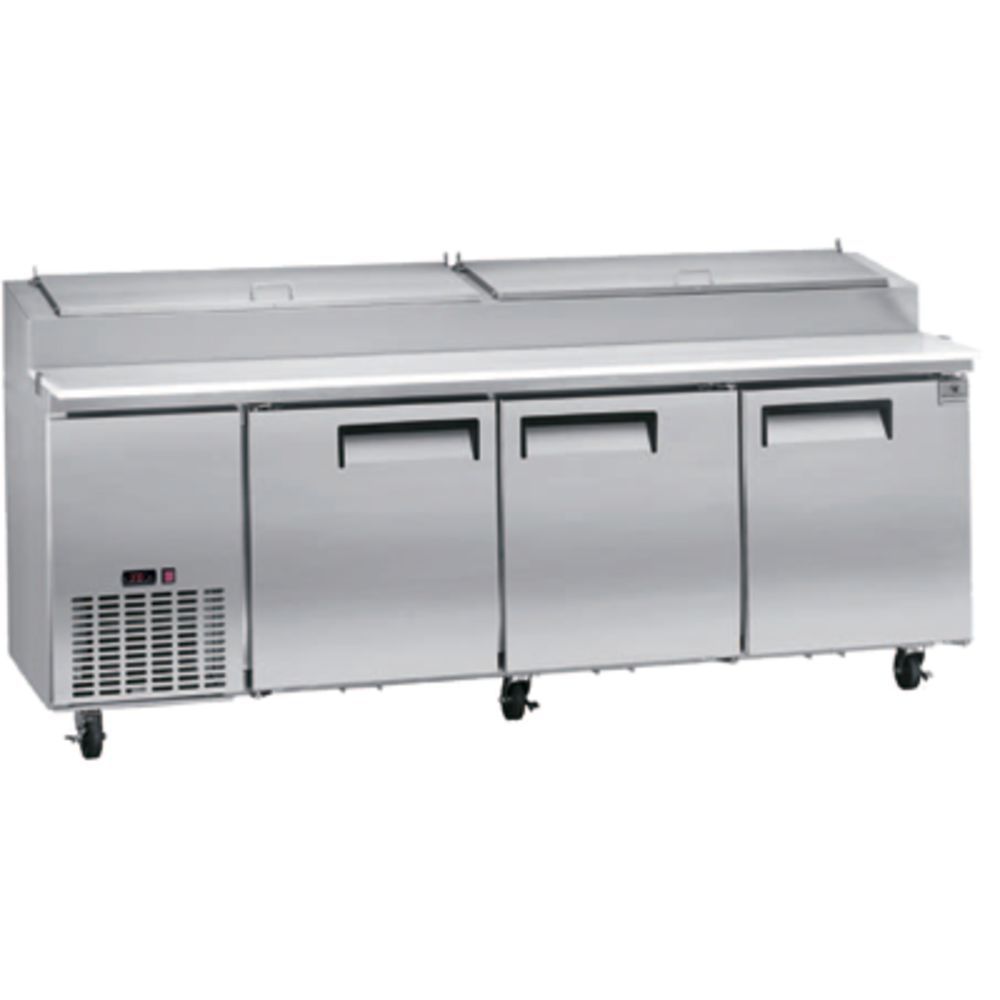 Kelvinator Commercial Refrigerated Counter, Pizza Prep Table three-section, 32 cubic feet capacity