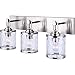 Stylish bath light bar fixture. Features a sleek, contemporary design that fits in with a wide variety of home decor. Requires (3) 100 watt Type A incandescent light bulbs, not included. Also compatible with LED (light emitting diode) or CFL (compact fluorescent) light bulbs. Canopy is 24-1/4 inches wide x 4-3/4 inches high. Shade size for each light is 5 inches wide x 5-3/4 inches high featuring water mark glass. Easy Connect installation.