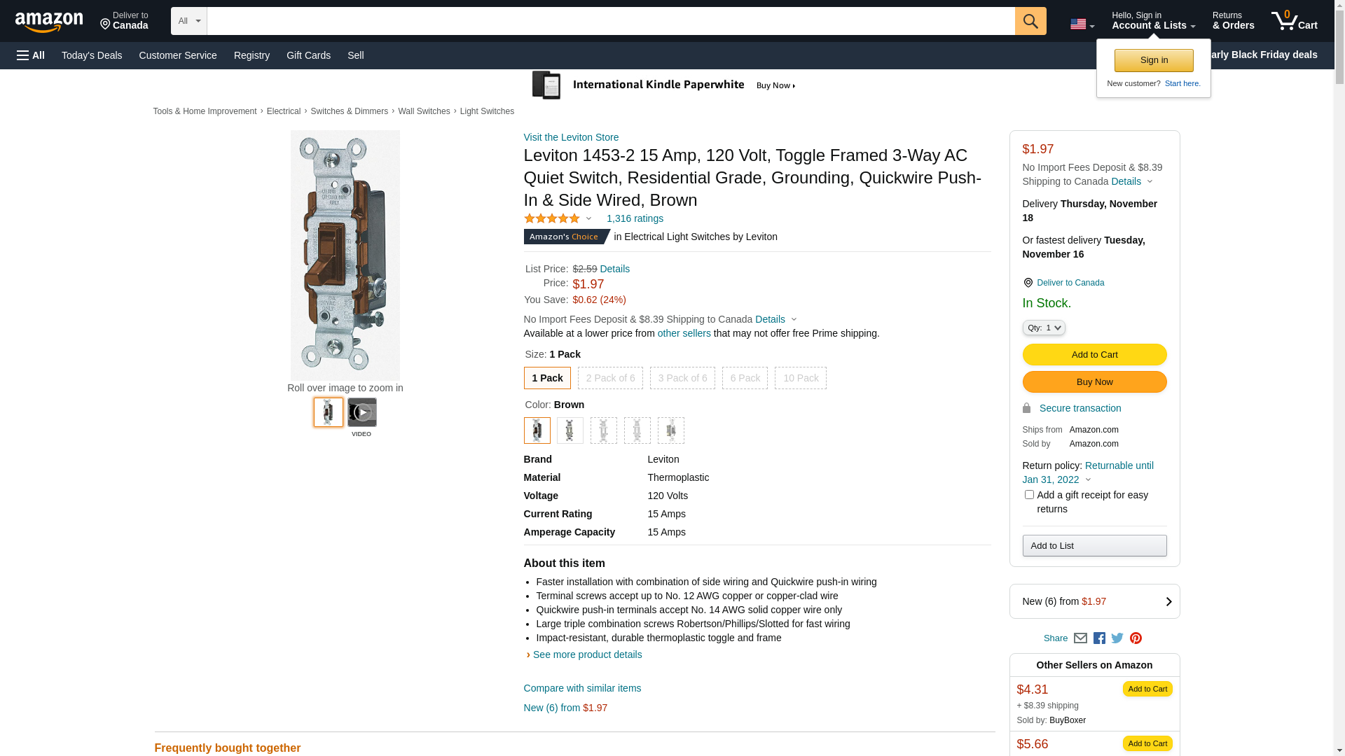 Leviton 1453-2 EMW3201837, 1 Pack, Brown