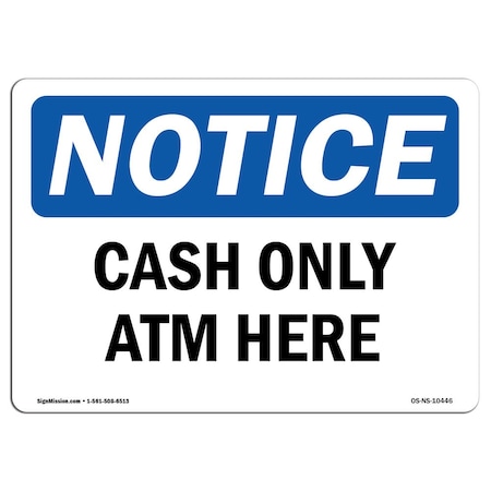 OSHA Notice Sign, Cash Only ATM Here, 5in X 3.5in Decal, 10PK