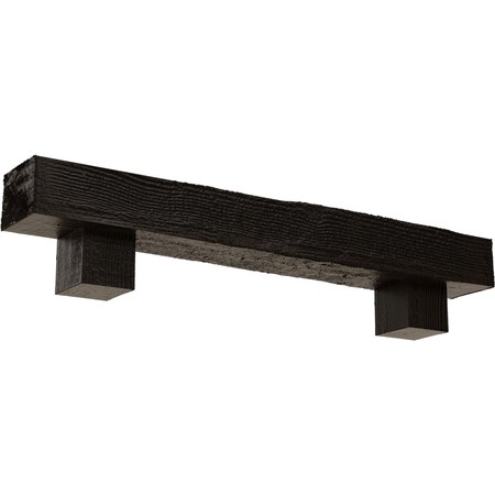 4" H x 8" D x 60" W Rough Sawn Faux Wood Fireplace Mantel Kit w/ Alamo Corbels, Premium Walnut