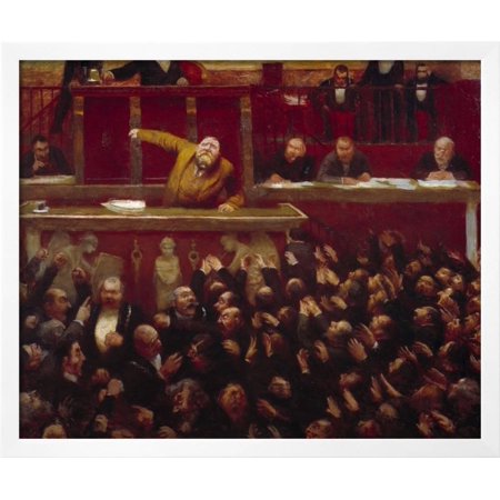 <ul> <li>Title: Jean Jaures Speaking at the Tribune of the Chamber of Deputies by Jean Veber</li> <li>Product Type: Framed Art Print</li> <li>Framed in SOHO White</li> <li>Arrives ready-to-hang for fast, simple installation</li> <li>Framed Size: 32.5x27 in.</li> <li>Handcrafted in the USA</li> </ul>