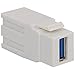 ICC USB Keystone inserts are an easy way to customize wall plates or patch panels to fit your install while providing a finished look. This USB keystone insert allows you to install a USB Type A cable in the rear and one in the front. This USB 3.0 keystone is backwards compatible to USB v1.1 and 2.0. The keystone will support data transfer rates of up to5 Gbps. This jack is easy to install and will fit into any standard size keystone wall plate, surface mount box, or patch panel. Features: Color: White Gold Plated USB 3.0 Rated USB Type A Front and Rear Jacks Transfer Rates up to 5 Gbps Feed-through design Fits into any Keystone opening Ideal for Residential or Commercial Use Wall Plates & Jacks > Voice & Data Jacks > USB Jacks, Wall Plates & Jacks > Voice & Data Jacks > USB Jacks IC107UAAWH