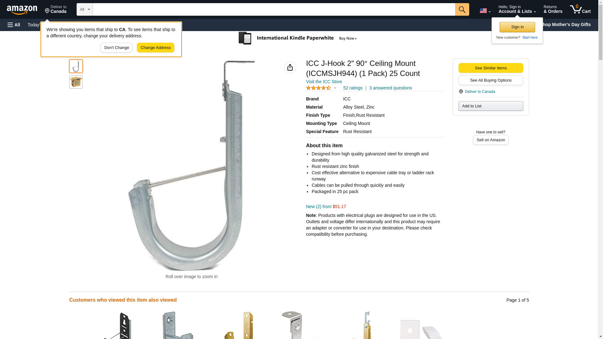 ICC J-Hook 2″ 90° Ceiling Mount (ICCMSJH944) (1 Pack) 25 Count