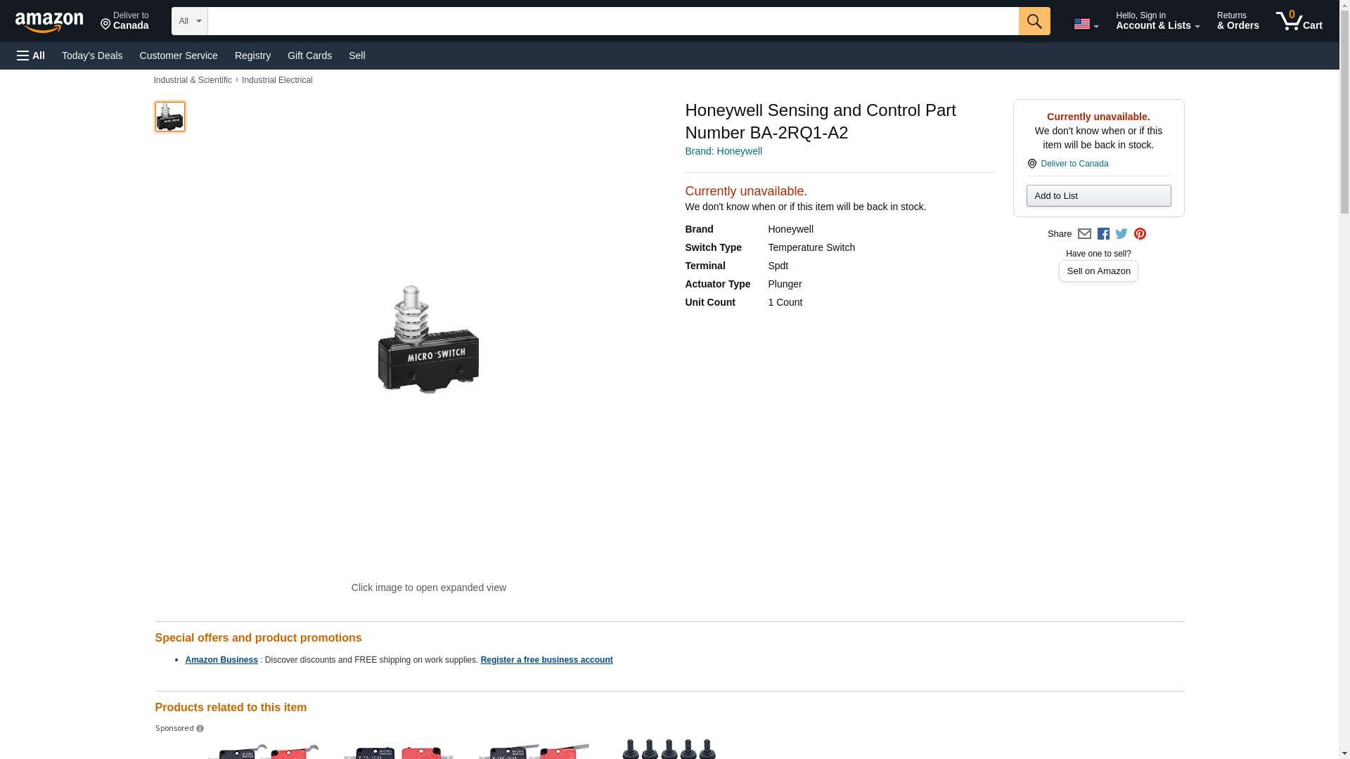 Honeywell Sensing and Control Part Number BA-2RQ1-A2