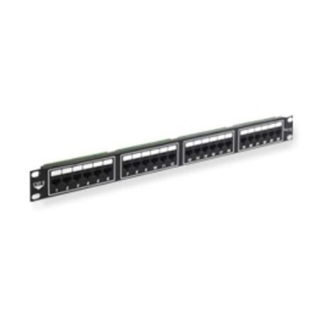 The Category 6 (CAT6) 24-port, 1 RMS patch panel exceeds TIA’s Category 6 performance standards. This horizontal patch panel is designed with rear 110 IDC's for quick and easy punch-down termination. It also comes integrated with a universal label for either 568-A or B wiring. Package includes #12 rack screws.FeaturesRack-mounted CAT 6 component rated patch panel provides excellent performance for data networks requiring maximum speed and bandwidth.Enhanced crosstalk cancellation reduces return loss.Exceeds ANSI/TIA-568 Category 6 connecting hardware requirements.Engineering to provide 110 IDC termination reducing installation time.Includes both TIA-568A and TIA-568B color wiring diagrams.Backwards compatible with all lower rated category components.Fits standard 19" EIA rack mount width.1 rack mount space (RMS).UL listed.