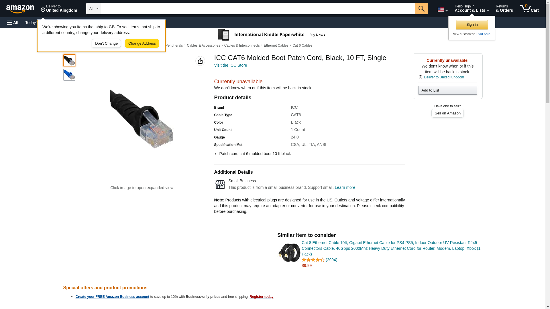 - ICC ICC-ICPCSK10BK PatchCord 10 Cat6 Black (ICC-ICPCSK10BK)
