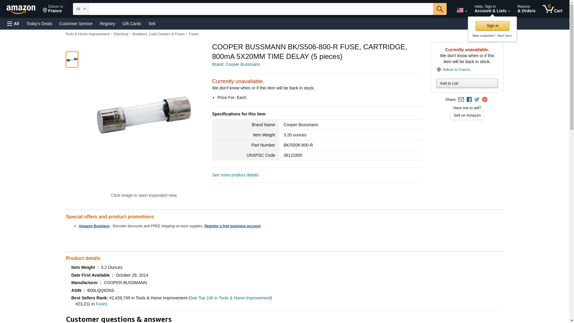 BUSSMANN S506-800-R - S506 800mA BUSS TD BK 100 BOX -R (Pack of 1). Cooper Bussmann BK/S506-800-R.