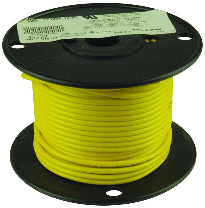- Price For: Each Stranded / Solid: Stranded Item: Hookup Wire Spool Length: 100 ft. Standards: UL Style 1015 (UL: 221 Degrees F, 600V); CSA Type TEW: 221 Degrees F, 600V; RoHS Compliant Directive 2011/65/EU; Designed to meet UL VW-1 Vertical Wire Flame Test Wire Type: UL 1015, CSA TEW Voltage: 600 Wire Size: 14 AWG Temp. Range: -22 Degrees F to 221 Degrees F Wire Color: Yellow