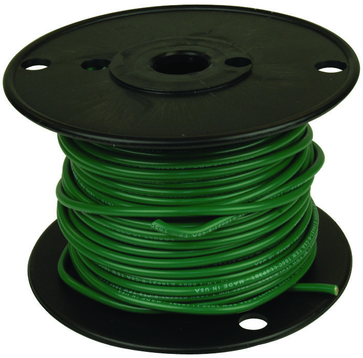 | Feature | Price For: Each Stranded / Solid: Stranded Item: Hookup Wire Spool Length: 100 ft. Standards: UL Style 1015 (UL: 221 Degrees F, 600V); CSA Type TEW: 221 Degrees F, 600V; RoHS Compliant Directive 2011/65/EU; Designed to meet UL VW-1 Vertical Wire Flame Test Wire Type: UL 1015, CSA TEW Voltage: 600 Wire Color: Green Insulation Material: Color-Coded PVC Nominal Outside Dia.: 0.141" |