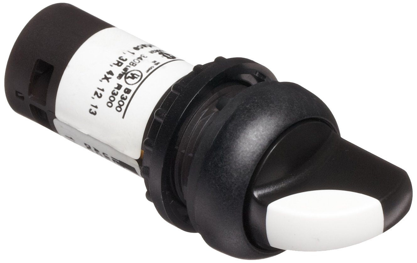Eaton C22S-WK-K01 Knob Type Selector Switch, 2 Positions, Momentary Operation, Black Bezel, SPST-NC Contact