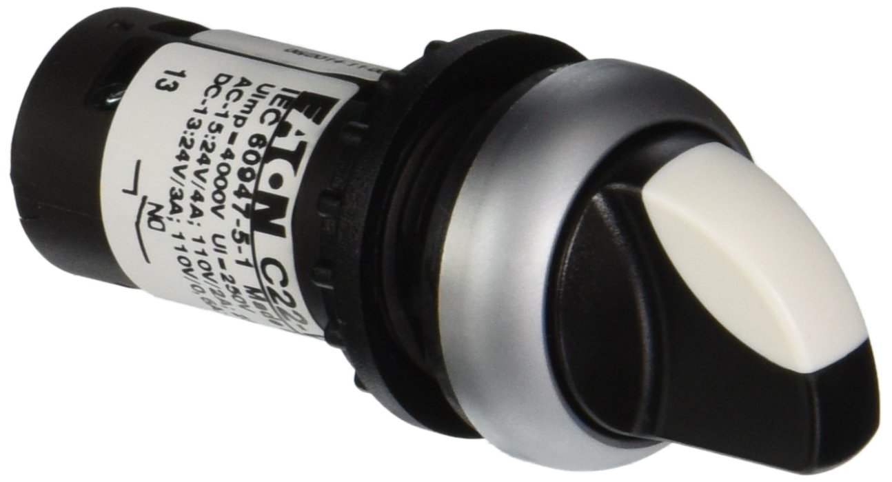 Eaton C22-WRK-K20 Knob Type Selector Switch, 2 Positions, Maintained Operation, Silver Bezel, DPST-2 NO Contacts