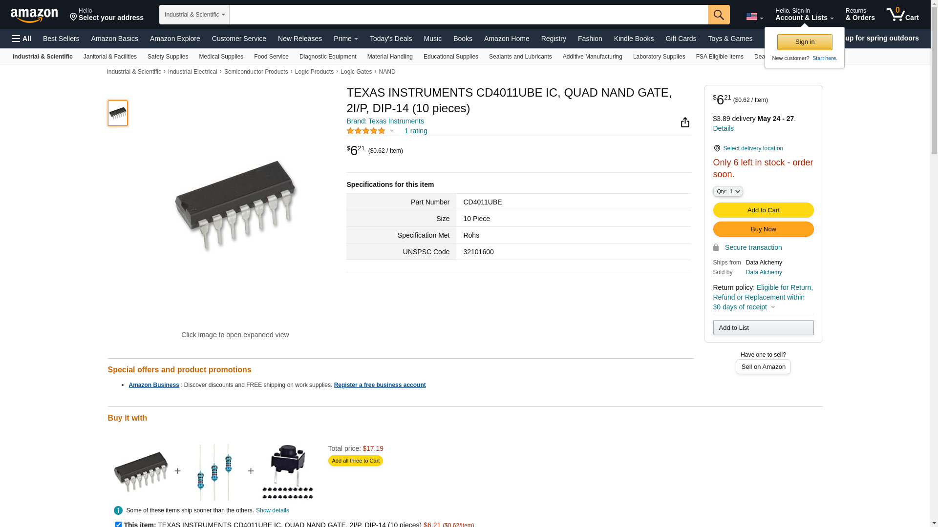 ![]() Radwell | CD4011UBE | 1 | 19 | 1 | 1 @ $0.64 |