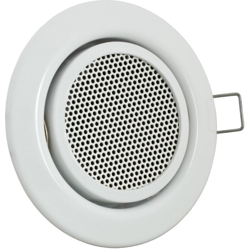 MOBOTIX MX-HALO-SP-EXT-PW Integrated speaker incl. mount, white - Suitable for the installation in ceilings or walls, indoor (IP20) - Compatible with all cameras S1x and V1x - Direct connection via two-wire cable, no additional power supply unit needed - Inner ring with speaker can be tilted up to 20 deg. - Temperature rage: -30 to 60 deg.C/-22 to 140 deg.F - IP code: IP20 - impedance: 8 ohm - Speaker material: metall with perforated plate covering - Connection type: two-wired strand, clamp included